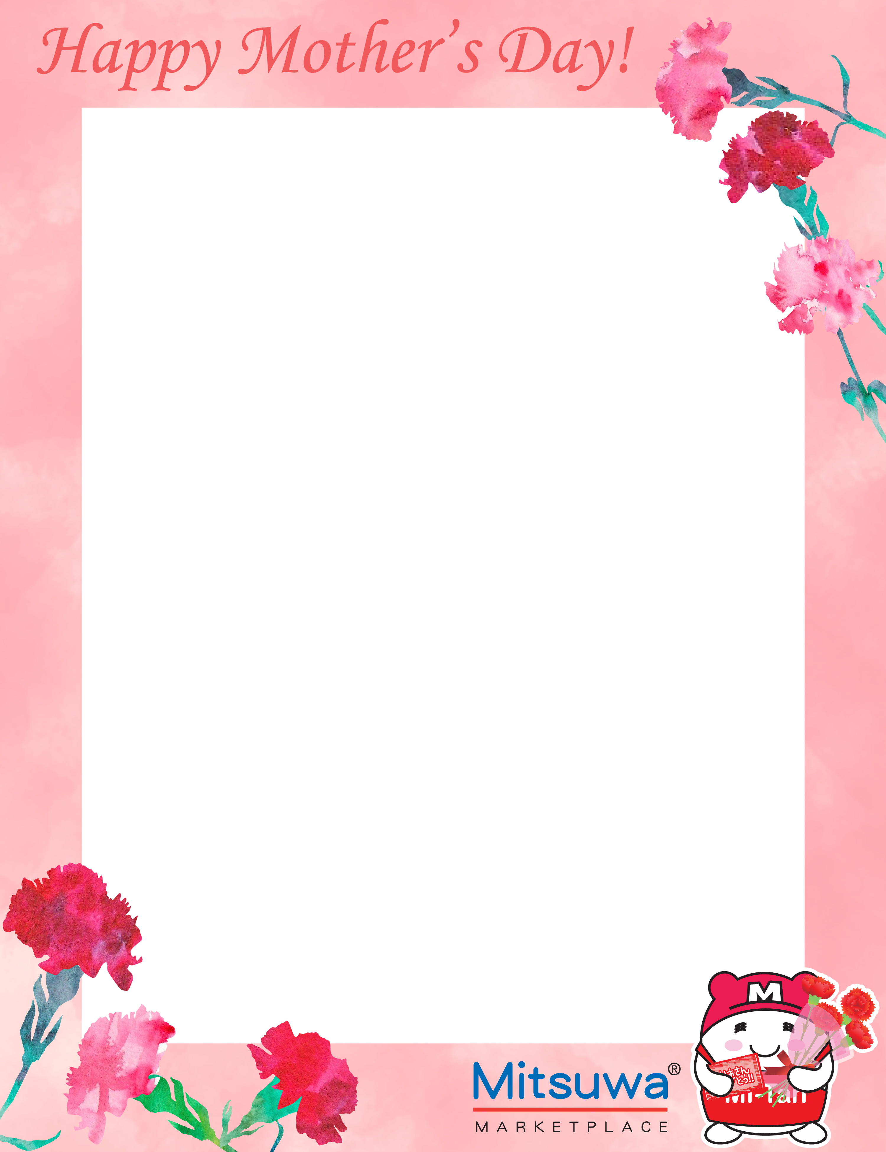 Create a heartfelt portrait of your mother and have your artwork featured in Mitsuwa Marketplace's online gallery for the world to see how much you love her! Once your drawing is posted in the gallery, you’ll receive a special gift from us at the Customer Service counter of the store you registered with. We accept registration and drawing submissions online only. The registration begins on April 17th, 2026 and ends on May 9th, 2026. The period of submission and exhibition are as follows:
