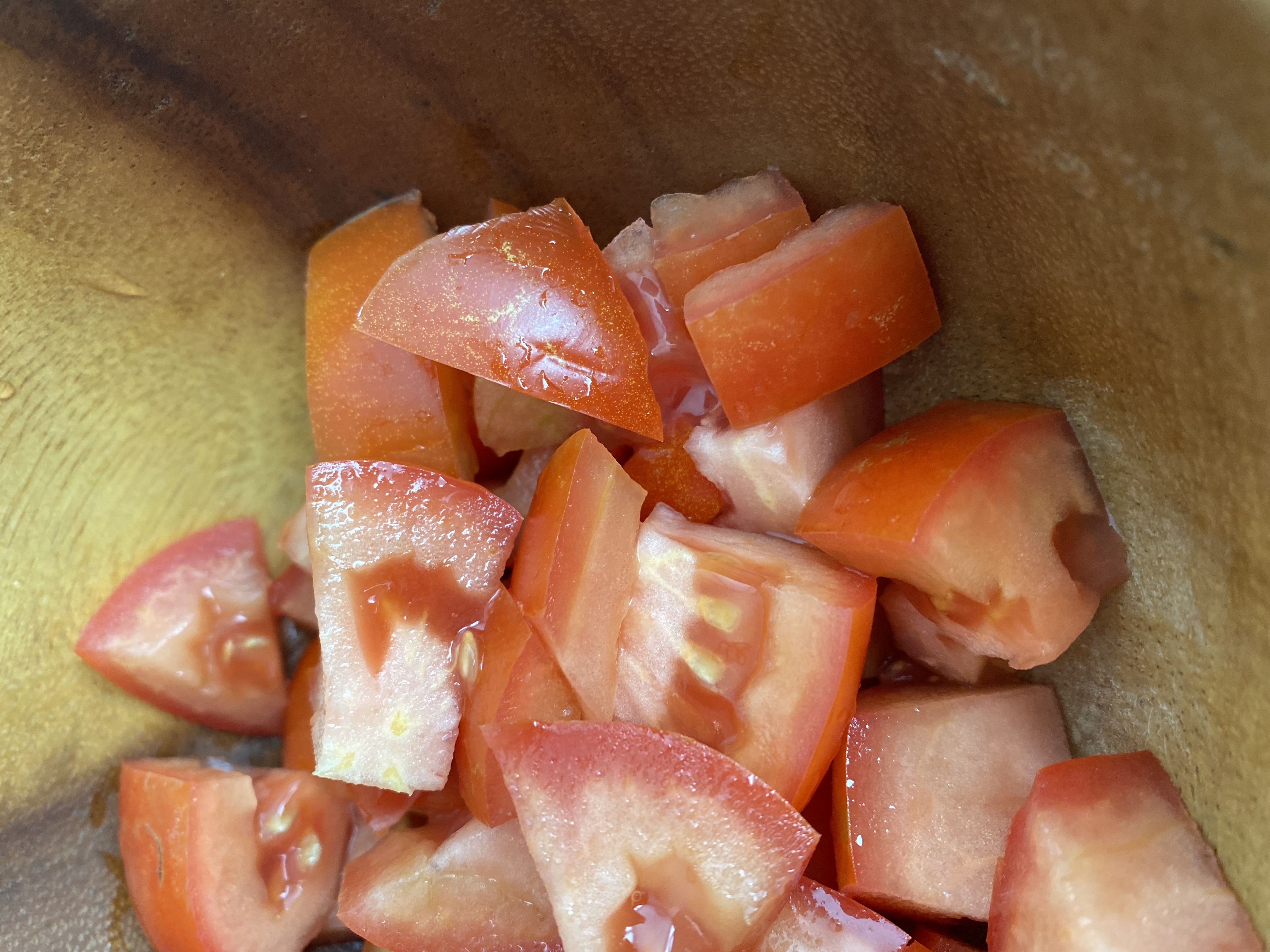 1. Dice avocados and tomatoes into bite size cubes into bowl.