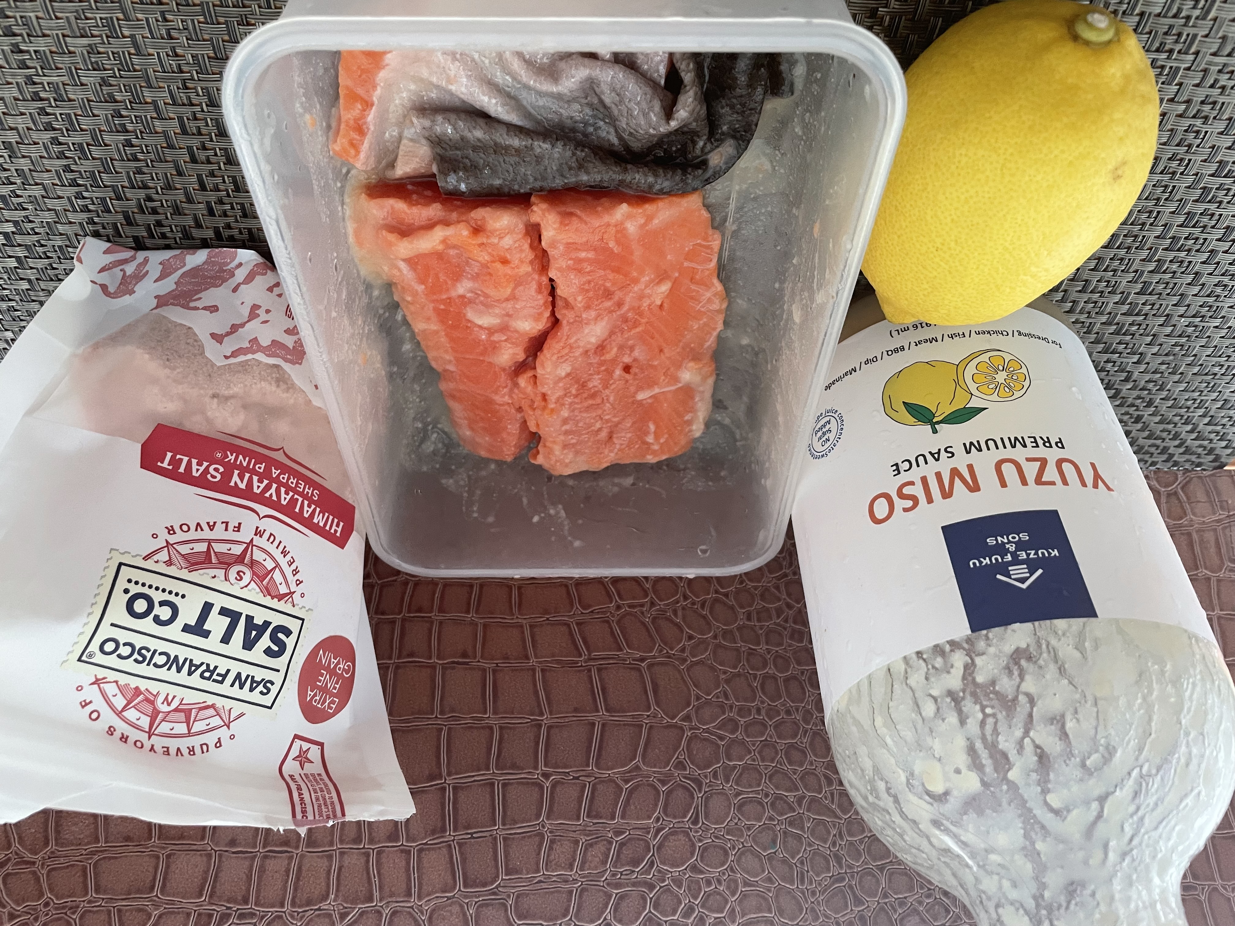 I used frozen salmon. Defrost the salmon, wash and pat dry with kitchen napkin. Marinade both side of the salmon with yuzu miso for at least 4 hours in the fridge.
