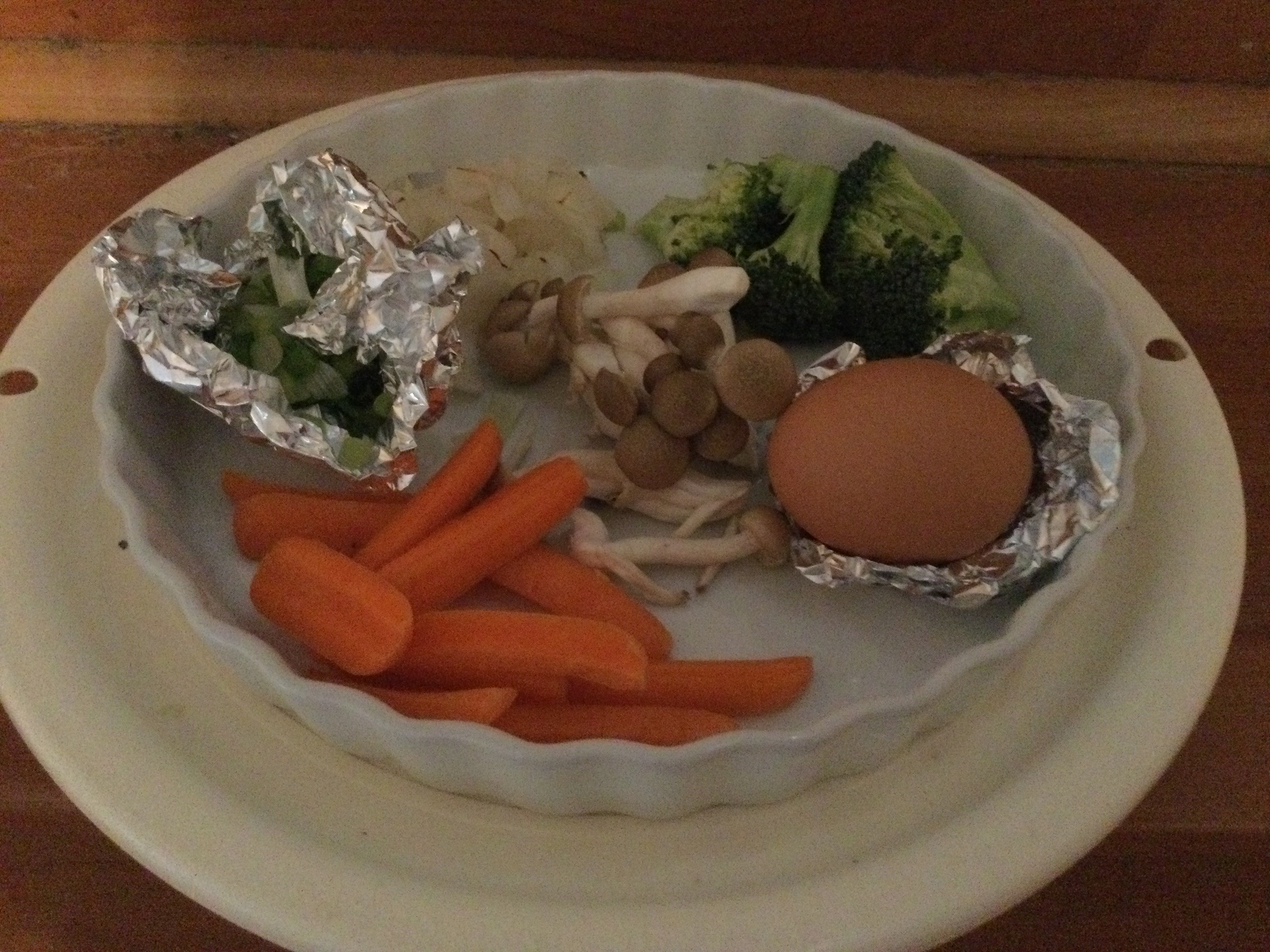 I used onion, carrot, simeji-mushroom, broccoli, and green-onion, but you can use any kind of vegetables or mushrooms.