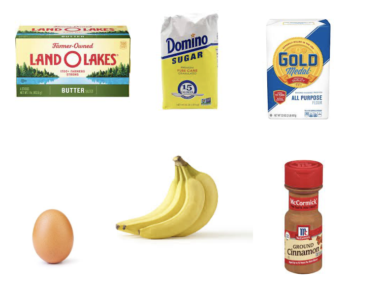 Easy to make and delicious banana bread recipe. Ripe bananas, butter, sugar, egg, baking soda, cinnamon and flour.